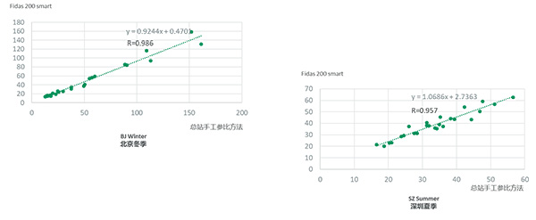 Figure 4: PM₂.₅ Passes CNEMC Applicability Test (Beijing Winter, Spring, Summer and Shenzhen Summer)